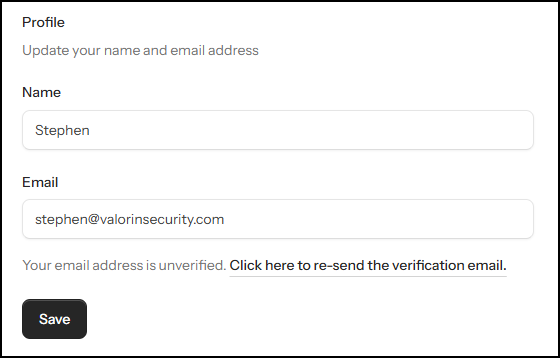 Changing your email address immediately saves the new email, and resets verification: