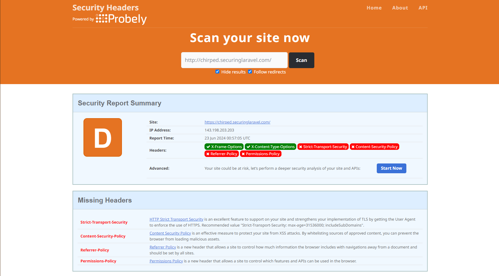 ❌ <meta> tag content-security-policyAs we can see from the above, the following headers are missing: